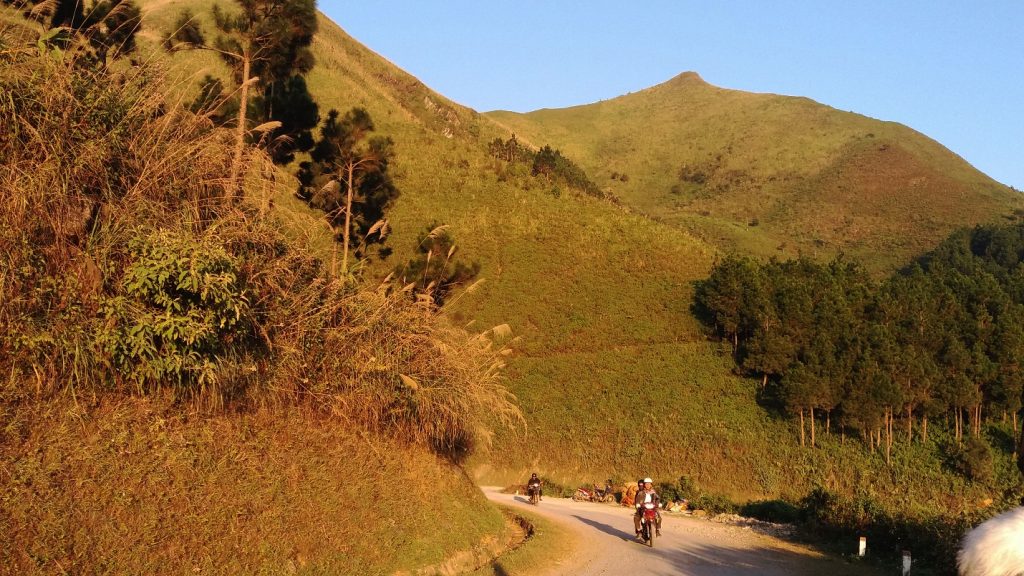 Chúng tôi chạy xe máy men theo con đường từ Mộc Châu qua phà Vạn Yên lên Bắc Yên để đến với Tà Xùa – vùng đất được mệnh danh là thiên đường săn mây. Do đã xem rất kĩ các bài viết hướng dẫn, cũng như ngắm rất nhiều bức ảnh đẹp, tôi hiểu rằng muốn săn được mây phải hội tụ đủ rất nhiều điều kiện cần và đủ nào là nhiệt độ, độ ẩm, rồi thì nắng mưa… Trong khi chúng tôi chỉ có một đêm ở Tà Xùa – có mây hay không đều phải xem vào ý trời và may mắn của chúng tôi. Có thì vui, không có cũng vui vì đã đến một địa danh mới trước đó chỉ thấy trên facebook.