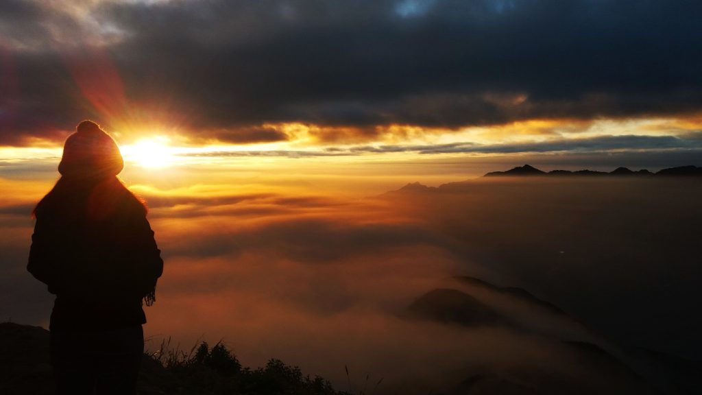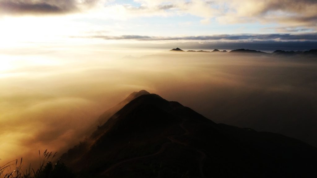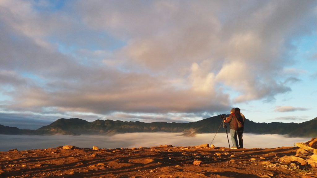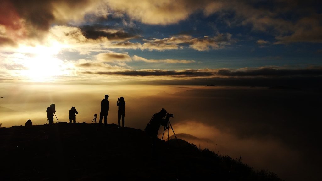 Đó là ngày trong tuần nên mảnh đất nhỏ nhỏ ngắm mây khoảng 30 người, ai cũng sẵn sàng điện thoại, máy ảnh, chân máy chờ mây, chờ nắng. Trời tung lên được một nhúm mây bé tẹo, mỏng dính bao phủ thung lũng. Trời lúc này vẫn còn nhá nhem, tôi chẳng có dự đoán gì, cũng chẳng thể làm gì ngoài việc chờ đợi. Mỗi một khoảnh khắc trôi qua tôi đều ghi nhận những thay đổi bất ngờ của thiên nhiên.