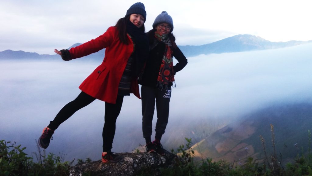 Mở cánh cửa trên gác gỗ nhìn ra thung lũng nắng đang tắt dần, chúng tôi thầm cảm ơn thời tiết đã ủng hộ suốt những ngày qua. Tôi vừa nhón chân đi trên sàn gỗ lạnh vừa co ro kêu rét. Ngoài ban công gỗ có mấy chậu hoa hồng đang độ nở rộ, mấy chiếc ghế bé con con và chiếc bàn bằng tre mà theo như lời cô bạn nhỏ kia nói thì “Ở ban công này những ngày mây nhiều thì chẳng cần phải ra chỗ sống khủng long cũng đủ để thưởng thức biển mây”. Hai mươi mấy năm sống ở phương Nam nắng ấm, cái lạnh phương Bắc làm da chúng tôi nứt nẻ và khô rát.