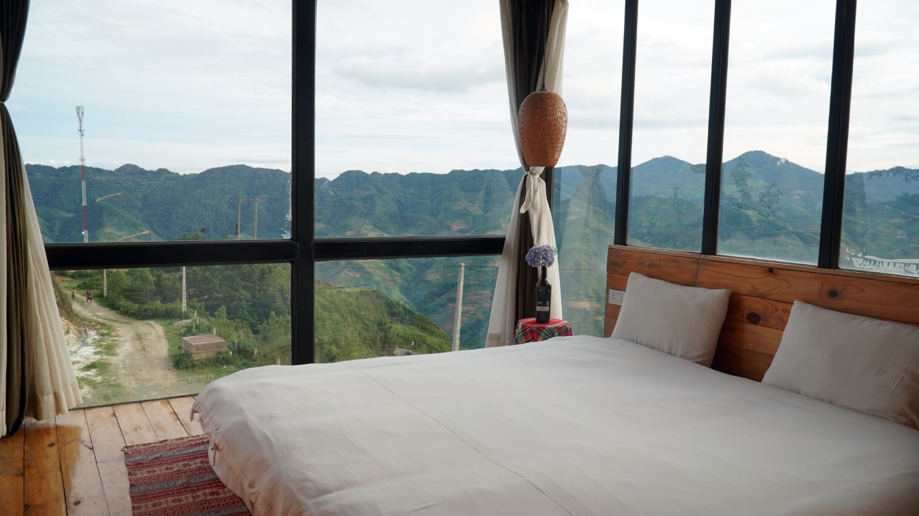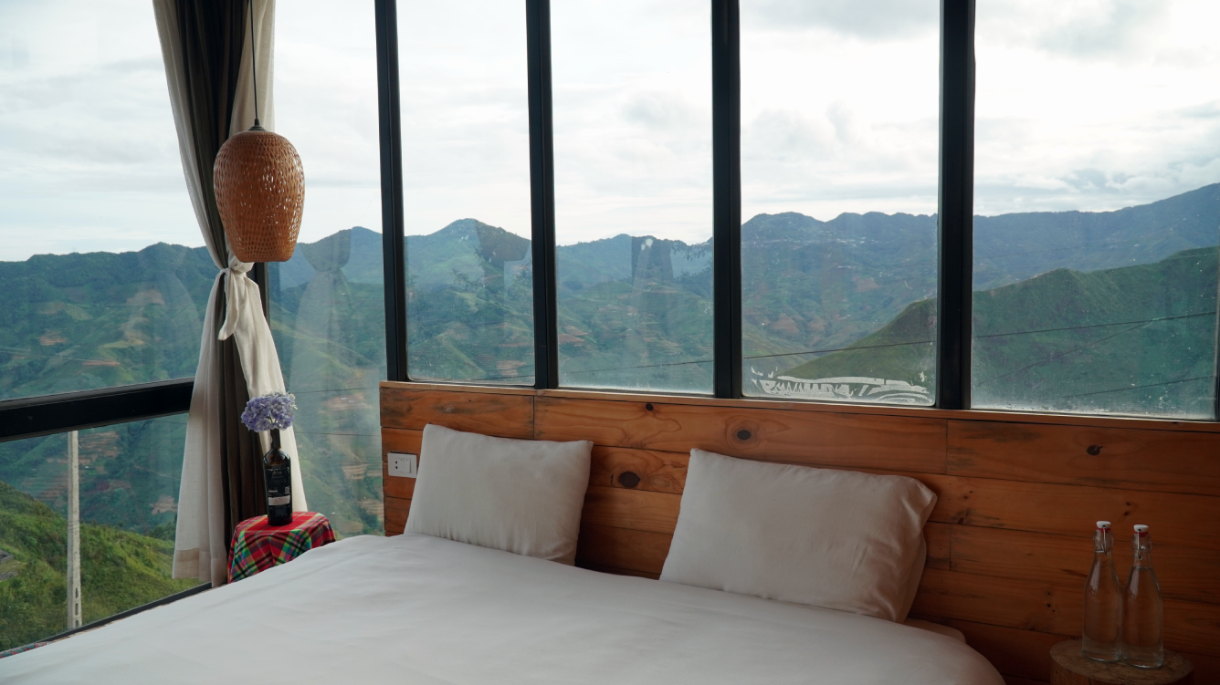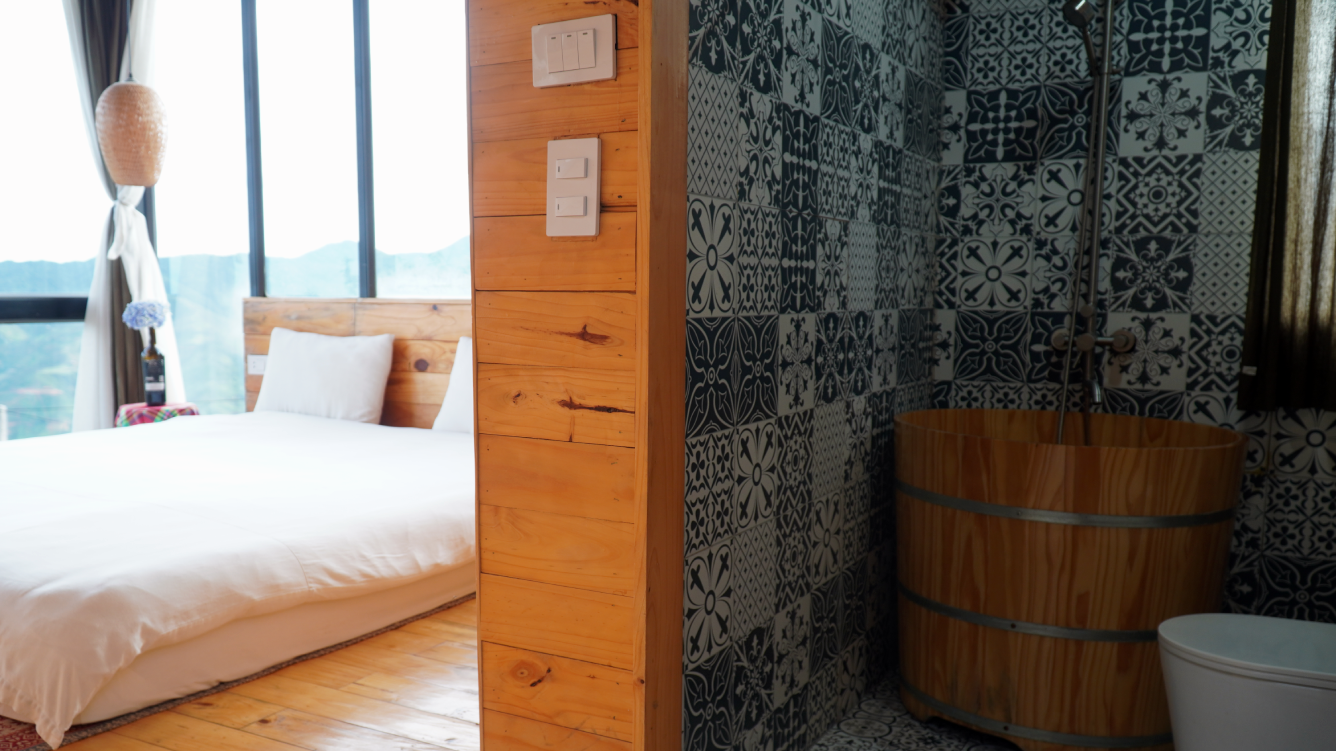 Điểm đặc biệt của bungalow nằm ở thiết kế mộc mạc, gần gũi, được chăm chút bởi những hoa văn, họa tiết dân tộc đậm chất bản địa. Từ những bức tường đất, mái lá đến nội thất gỗ thô mát lành, mọi chi tiết đều gợi lên cảm giác thân thuộc, ấm áp và chân thực – như đang được sống trong một phần đời giản dị của núi rừng Tây Bắc.